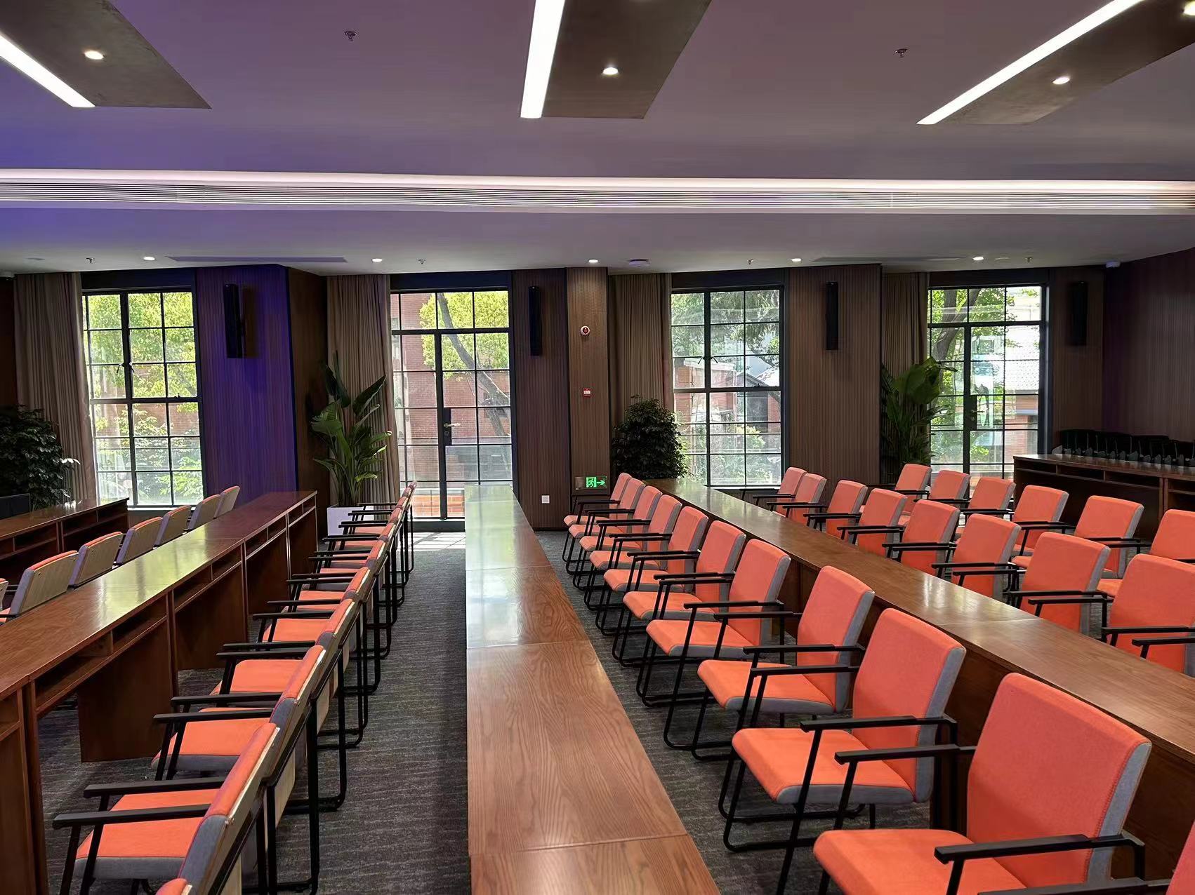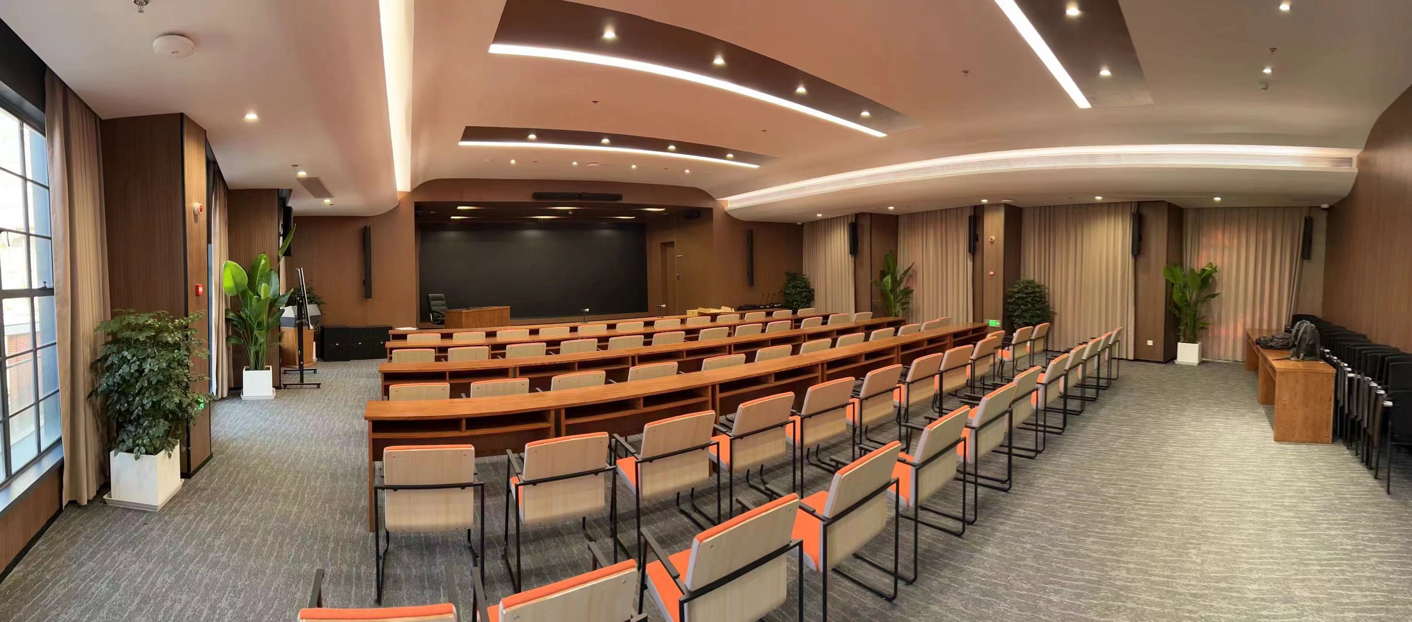 EMX助力公安部檢測(cè)中心。近日,EMX音響在公安部檢測(cè)中心完成了其多功能廳的改建工程。近300平的多功能廳中,整體裝修多為硬飾面,建聲環(huán)境不佳,并且樓層偏矮,業(yè)主希望整套音頻系統(tǒng)既能滿足日常各類型會(huì)議、報(bào)告、培訓(xùn)的語(yǔ)言類擴(kuò)聲需要,同時(shí)音頻系統(tǒng)還要滿足其在特定日期的文娛活動(dòng)擴(kuò)聲要求,包括小型表演、年終會(huì)議和電影放映的需求,并且要求設(shè)備要小型化, 和裝飾能夠匹配。